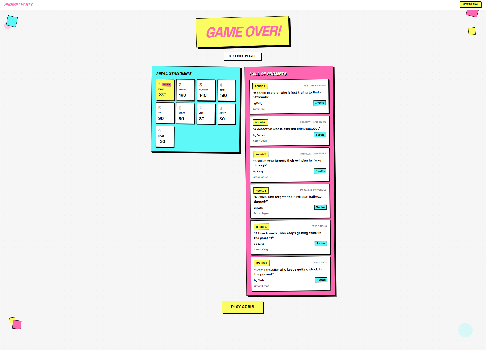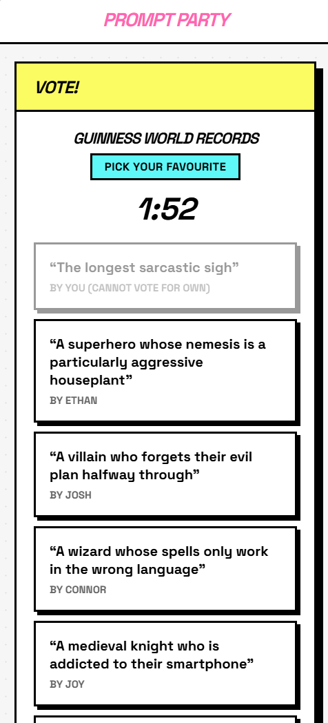 - Players vote on their favorite prompt